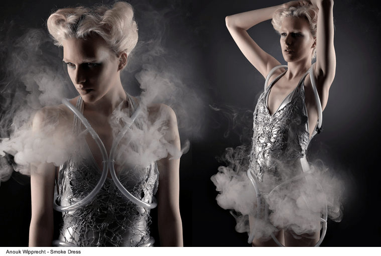 I primi lavori di Anouk, come Smoke Dress e Spider Dress, si occupano principalmente di creare uno connessione aumentata con le persone che ci circondano utilizzando una modalità non verbale. Mentre il primo, un abito completamente stampato in 3D, crea automaticamente un velo di fumo ogni volta che qualcuno entra nello spazio personale di chi lo indossa, il secondo è composto da membra animatroniche che assumono una posizione di attacco quando qualcuno si avvicina in modo aggressivo e creano invece gestualità più fluide per accogliere i visitatori più calmi.