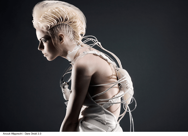 Dopo un paio d’anni di studi, si è resa conto che al percorso di formazione nella moda mancava qualcosa, era troppo analogico per riuscire a sperimentare in modo più radicale. Il padre aveva un lavoro che la avvicinava ai computer e alla programmazione, ma l’interesse di Anouk l’aveva portata verso la robotica per le sue caratteristiche più fisiche: “Un robot potrebbe avere un cuore e un cervello perché ha la forma di un essere umano. Aggiungere un robot al corpo potrebbe permettere ai miei capi di esprimere al meglio l’identità e gli stati d’animo di chi li indossa”, mi spiega.
